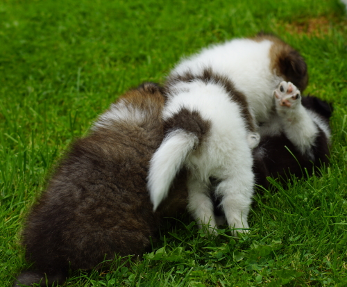 "Quail quest of hope vom Ohmtalteufel" und unser "Grandgables The IT Factor" sind mit drei langen Tagen "Verspätung" nund endlich seit dem 13.06.2021 stolze Eltern von fünf kleinen Sheltierackern: zwei sable Rüden, ein tricolour Rüde und zwei sable Hündinnen haben die längere Zeit genutzt und sich ganz besonders schick gemacht ! die Jungs: "Jamy the Jazzman", "Jannis Joy of Life", "Jarryd just perfect" und die Mädels: "Janie Jewel of Joy" und "Joyful Julischka"