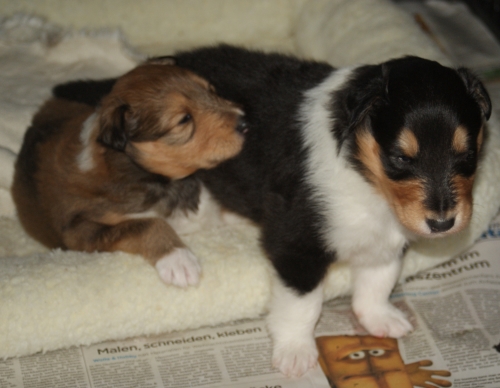 Wir könnten über die Geburt dieses Collie-Pärchens nicht glücklicher sein und beobachten jetzt deren weitere Entwicklung mit großer Freude.