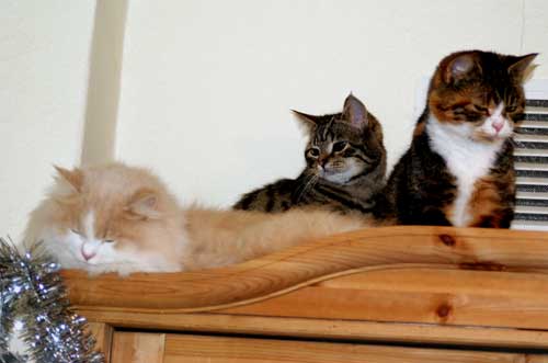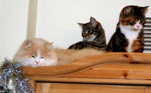 Genügend Platz ist wie man sieht auch auf dem erhöhten Schlummerplatz und gemeinsam ruht und schnurrt es sich eh am besten . . . |