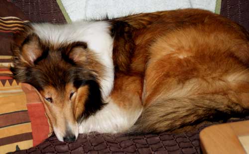 Unsere Ina war die erste Tochter unseres Mikey und erfreute sich zeit ihres Lebens immer allerbester Gesundheit. Auf dem Foto ist Ina leider nicht in ihrer vollen Haarpracht zu sehen, da die Aufnahme kurz nach ihrem Wurf in dem sie uns Mücke schenkte, entstand. Ina war bis zu ihrem 7. Lebensjahr die absolute Rudelchefin. Aber dieser Posten wurde ihr dann von ihrer Nichte, unserer Hazel streitig gemacht und Ina beschränkte sich auf ihre neue Aufgabe als Großmutter. Ina war genau wie ihre Mutter Cassie in ihrem bisherigen Leben nie ernsthaft krank und sah den Tierarzt in den über 13 Jahren ihres Lebens nur zu Impfungen.