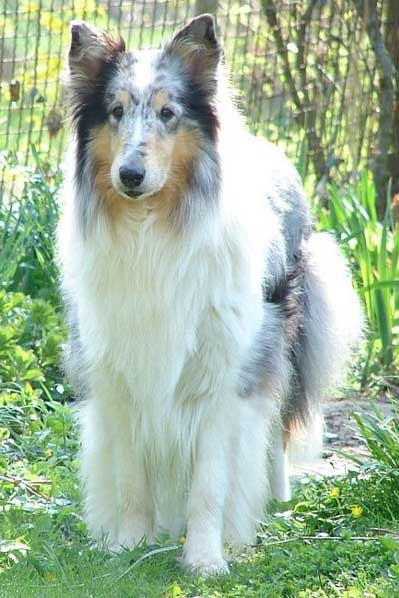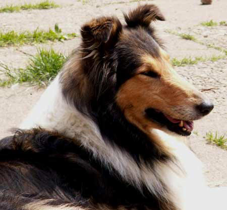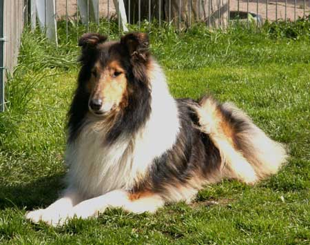 V: Black Lucifer von den Salzwiesen M: Sweet Cassie vom Ohmtalteufel Foto: Grohganz "Queenie" war neben ihrer Mutter die wohl wichtigste Hündin in unserer Zucht und zudem eine wunderbare Persönlichkeit, die ihrem Namen wirklich alle Ehre machte. Die Verbindung aus der sie "entstammt" war unser erster kleiner Schritt bzw. Versuch amerik. Blutführung in unsere Zucht zu holen. Obwohl wir von dem ganzen Wurf derart begeistert waren, dass uns damit sozusagen das "Ami-Fieber" gepackt hatte, war und bleibt "Queenie" für uns etwas ganz besonderes. Von ihrer Körpergröße und Typ war sie sicherlich nicht das, was man sich in den hiesigen Collie-Kreisen unter einer Collie-Hündin aus amerik. Blutführung vorstellte und die Züchterin und Besitzerin ihres Vaters konnte unsere Entscheidung sie zu behalten sicherlich nicht nachvollziehen. Foto: Alexander