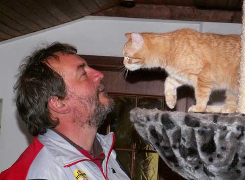 Dorf. Sehr oft kommt er auch Sonntag morgens - nach einer durchgemachten Nacht - an unser Schlafzimmerfenster "klopfen" und bittet so um Einlass um noch ein oder zwei Stunden mit uns zusammen im Bett zu schlafen. Seit ein paar Monaten ist er von einem seiner Ausflüge nicht mehr zurückgekommen. Wir wissen nicht wo er ist, aber wir vermissen ihn sehr. Fotos: S. Burow |