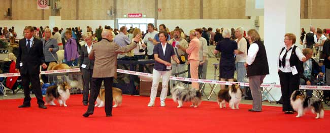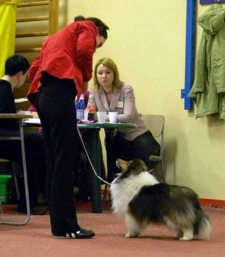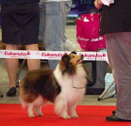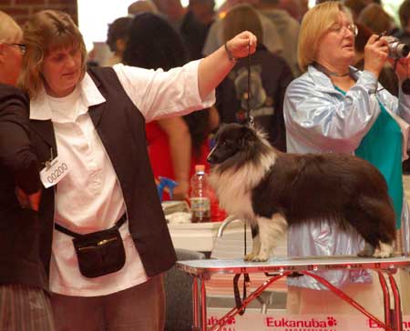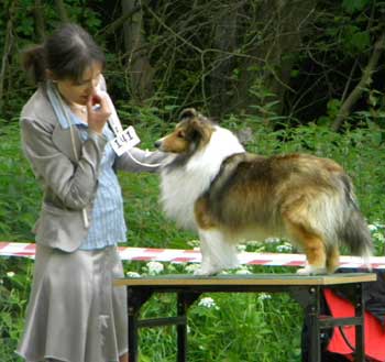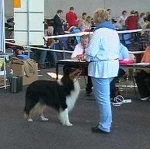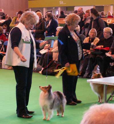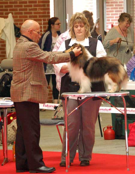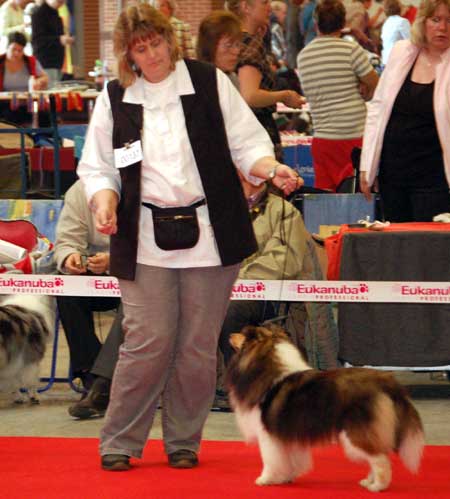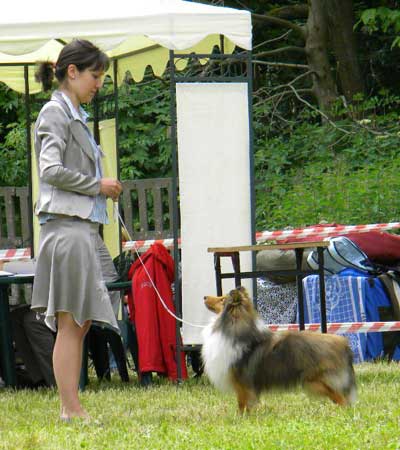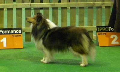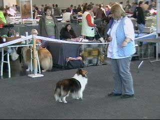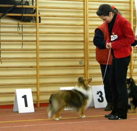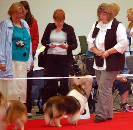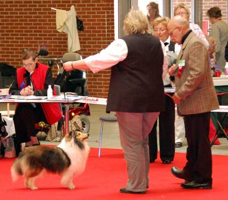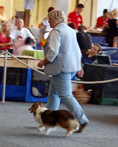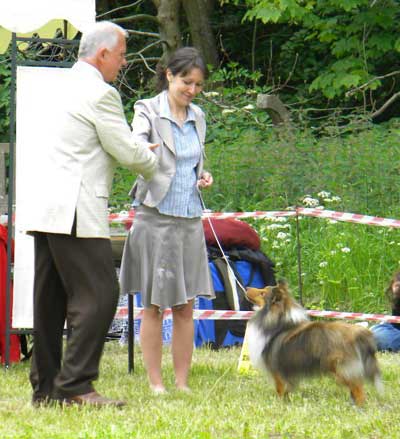 Dann kam "Yashi" an die Reihe, aber schon beim Blick in den Katalog war uns klar: gegen diesen sieggewohnten blauen Sheltiemann - seines Zeichens ein "Multichampion" - unserer Freundin Hela hatte er keine Chance und so erhielt er denn auch ein "Vorzüglich 2. Platz" !