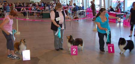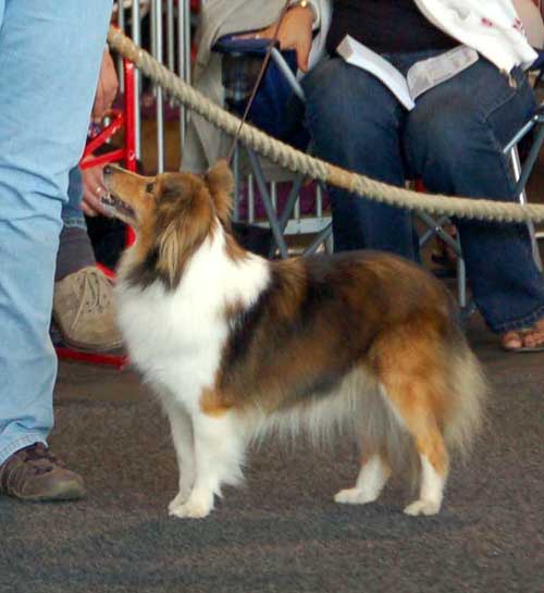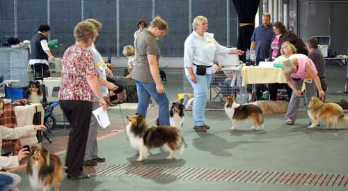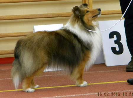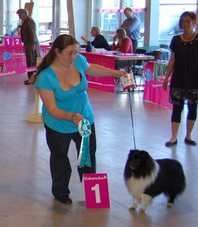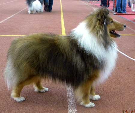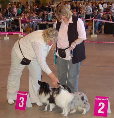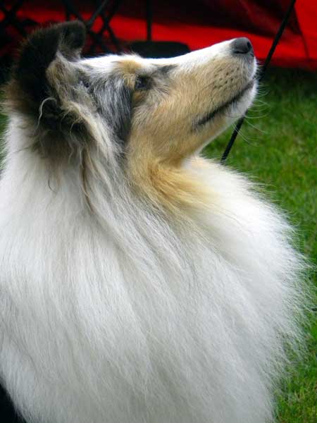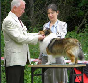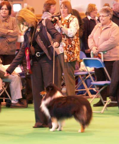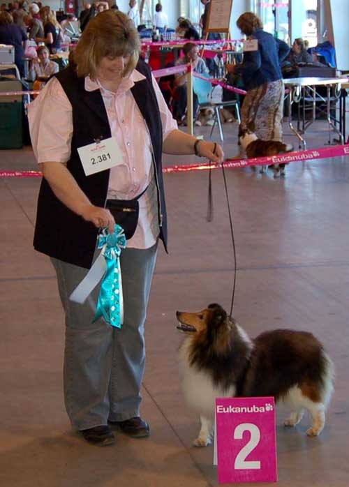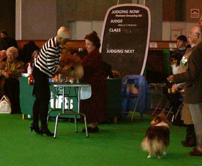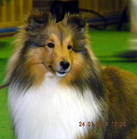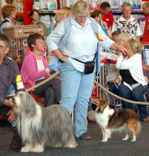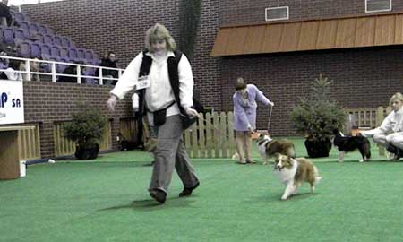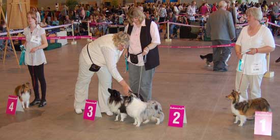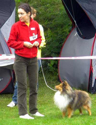 Dann kam "Yashi" an die Reihe, aber schon beim Blick in den Katalog war uns klar: gegen diesen sieggewohnten blauen Sheltiemann - seines Zeichens ein "Multichampion" - unserer Freundin Hela hatte er keine Chance und so erhielt er denn auch ein "Vorzüglich 2. Platz" !