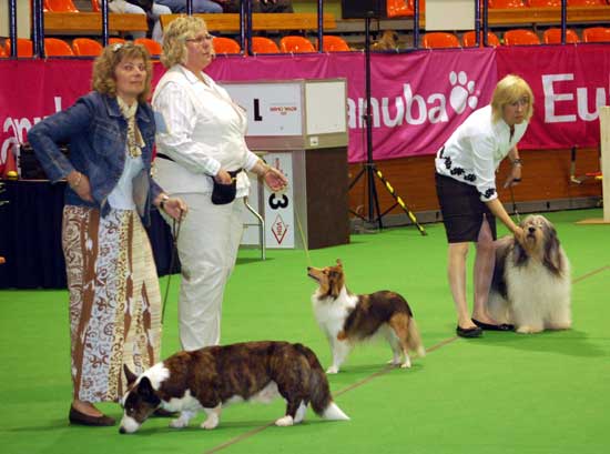 Dann kam das Debüt von Nette's kleiner "Molehillsdevils Aislinn" in der Zwischenklasse und sie machte es noch besser wie erwartet und erreichte ein "Vorzüglich 2. Platz" ! Herzlichen Glückwunsch können wir da nur sagen ! Wir möchten hier natürlich auch Marcella und Liz von Herzen gratulieren, denn Marcella gewann mit der kleinen australischen Schönheit "Ch. Scotsdream Havenly Daize" nicht nur die Championklasse, nein sie wurde auch noch Beste Hündin !