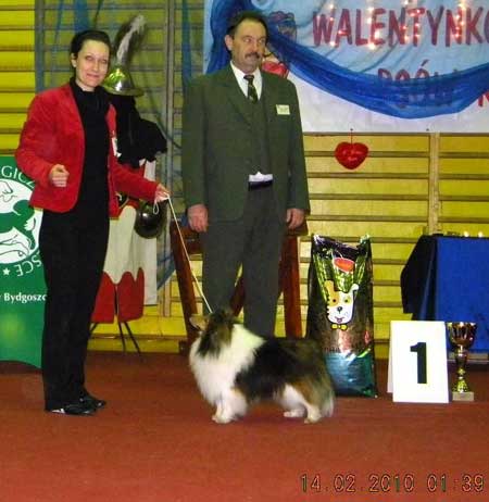 gewinnt auf der zweiten Show abends unter der Richterin Ms. Anna Dominiak nicht nur die Offene Klasse mit "Vorzüglich 1. Platz und CWC" und damit seine letzte Anwartschaft für den Polnischen Champion ! !