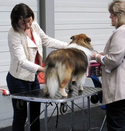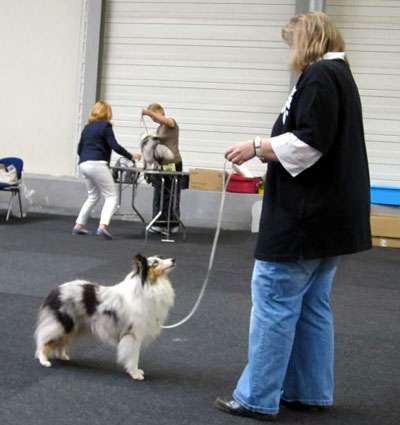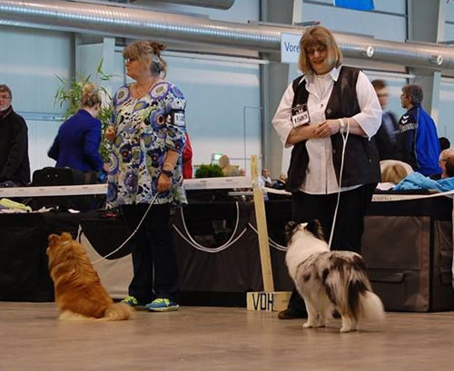 Und auch wenn wir erst mal lange haben warten müssen bis wir mit den Shelties an der Reihe waren, so hatten wir keine Langeweile, denn wir hatten uns zusammen mit weiteren Sheltiefreunden eine schöne Ecke in der Halle ausgesucht wo wir ausgiebig klönen konnten.
