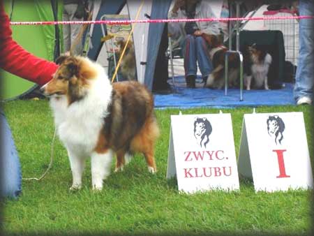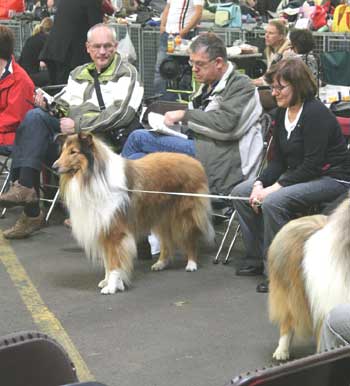Nach diesen tollen Erfolgen bei den Shelties sollte es im Collie Ring weiter gehen. Auch hier hatte ich die Freude "Mozart" = "Enjoy my life vom Ohmtalteufel" für unsere Freundin Waltraud ausstellen zu dürfen. Er hatte es Yashi gleich getan und ebenfalls "seinen Mantel" ausgezogen. Nun ja ich machte daher Waltraud nicht viel Hoffnung hinsichtlich einer Platzierung zumal einige weitere wunderschöne Rassevertreter in der Offenen Klasse Collie Rüden vorgestellt wurden.