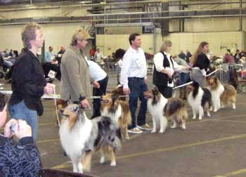 ein Teil der OK Sheltie Rüden, "Gizmo" zweiter von rechts beide Fotos: Pollag |