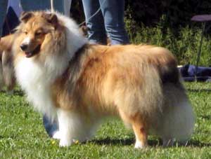 "sehr harmonische sable Hündin mit idealer Größe, mit vorzüglichem Kopf und Ausdruck, korrekte obere und untere Linie, sollte nicht mehr korpulenter werden ( wir werden versuchen ihr eine Diät schmackhaft zu machen und zu erklären das Models eben auf die Figur achten müssen :-)) ), sehr gute Winkelungen, korrekt im Stand und in der Bewegung, z.Z. nicht in voller Fellkondition, aufmerksames ausgeglichenes Wesen."