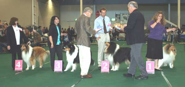 "Gizmo" ganz links und "Joey" ganz rechts bei der Entscheidung um das CAC und CACIB |