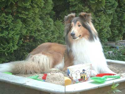 In ihrem zweiten "Wurf" schenkte sie uns als Einzelkind "Bubi". Vielleicht ist er auch gerade deshalb etwas besonderes für uns. Mittlerweile haben wir das Glück gehabt bereits Kinder von Bubi und somit Enkelkinder unserer Mücke aufziehen zu können. "Bubi's" Tochter "Beany" war lt. Collie-Revue Auswertung die erfolgreichste Ausstellungshündin 2005.