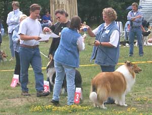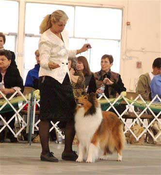 Unsere Amerik. & Kanadische Ch. "Vayu vom Ohmtalteufel" gen. Liesi oben: "Liesi" zusammen mit Laurie Jeff Greer auf der Collie National in 2006