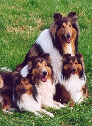 "Mücke" zusammen mit dem Collie-Rüden: "McCloud's Blaze of Gold", gen. "Loxley" HD/CEA/PRA/Kat.-frei, (V: Heirlair All Fired Up) und den Sheltie-Rüden: "Miles McCoy vom Ohmtalteufel" und "Joyful Julien vom Ohmtalteufel" (Wir haben "Damien" - wie "Joyful Julien" gerufen wurde im Alter von wenigen Monaten verm. Freunden geschenkt. Leider wurde er ohne das wir informiert wurden bzw. die Zusicherung der Rückgabe wenn man ihn nicht mehr halten kann oder will einzuhalten in 2005 verkauft und wir wissen nicht wo er jetzt ist. Wir hoffen von ganzem Herzen das es ihm gut geht) Fotos: Burow |