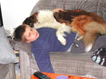 Nach einem anstrengenden "Spieletag" schläft es sich doch am besten warm und vor allen Dingen gemütlich (fragt sich nur für wen . . . ) zusammen auf der Couch !!! |