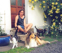 Auch wenn "Mikey" jetzt nicht mehr bei uns ist, in unseren Gedanken und Erinnerungen wird er immer da sein als das was er die ganzen Jahre für uns war: der Mittelpunkt in unserem Hause und in unserem Leben. Er hatte etwas faszinierendes an sich was man nicht beschreiben kann. Vielleicht eine kleine Story die dies u.E. verdeutlicht. Noch in unserer alten Heimat kam ich zurück von meinem täglichen Spaziergang mit den Collies und musste wie immer an einer Schule und Turnhalle vorbei. Aus der Turnhalle strömten mehrere Jungs und Mädels und kamen auf mich zu. Ich hatte 4 Collies an der Leine vor mir laufen, nur Mikey lief frei hinter mir. Die Jungs und Mädels sahen mich und die Hunde (darunter übrigens zwei sable Collies mit breiter weißer Halskrause) und meinten: "Mensch guck mal, die hat aber viele Hunde". Dann kam kurz hinter uns Mikey die Stufen zur Turnhalle runter und alle "Kids" riefen wie aus einem Mund: "Oooh Lassie..." und stürmten auf Mikey zu, umarmten und streichelten ihn voller Freude und er, er genoss es sichtlich . . . wie immer halt.