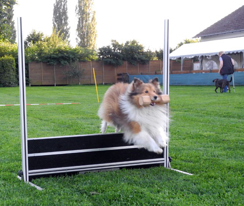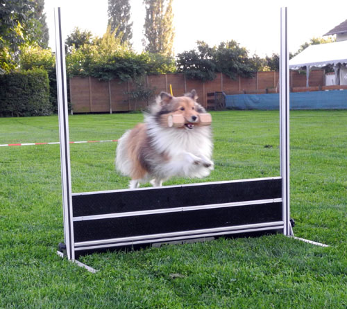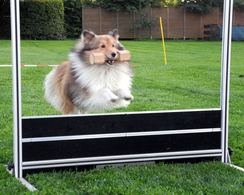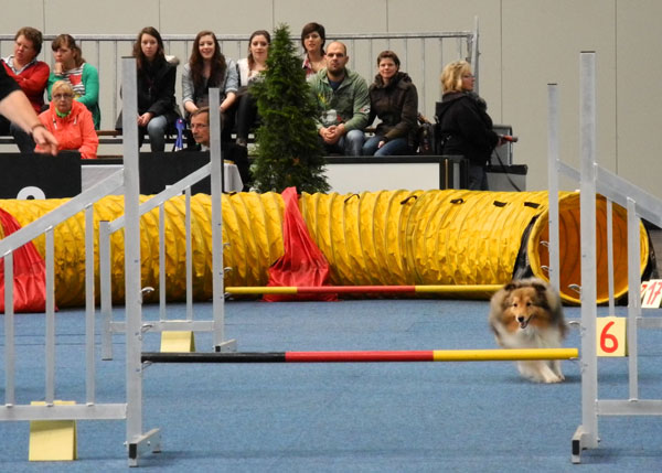 Das Foto oben zeigt "Timmy" bei einer Agility-Vorführung auf der Internationalen Zuchtschau in Hannover
