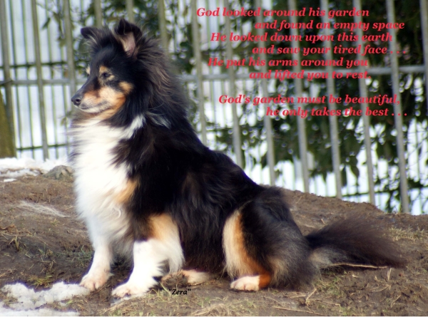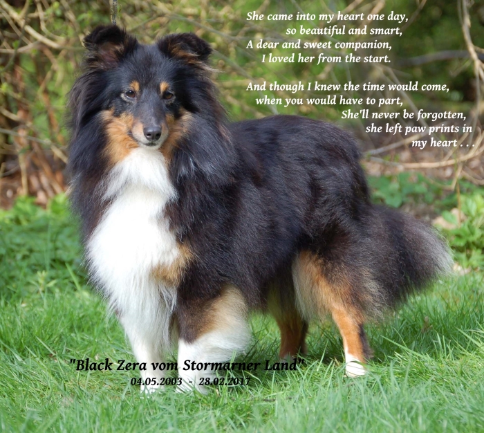 ![]() unsere "Zera" war eine ganz besondere Sheltiedame und sie bleibt ganz fest in unseren Herzen . . . Wer sie kannte der weiß wie besonders sie war und welchen Stellenwert sie bei uns im Rudel hatte. Wir danken ihrer Züchterin, Erika Heintz, von ganzem Herzen dass sie uns diesen wunderbaren Sheltieschatz vor fast 14 Jahren anvertraut hat ! Wir haben nachfolgend ein paar Fotos aus "Zera's" Lebensweg zusammengestellt, aber die wichtigen und schönsten Momente mit ihr sind ganz tief in unseren Herzen und werden uns begleiten bis wir sie irgendwann wieder sehen.
