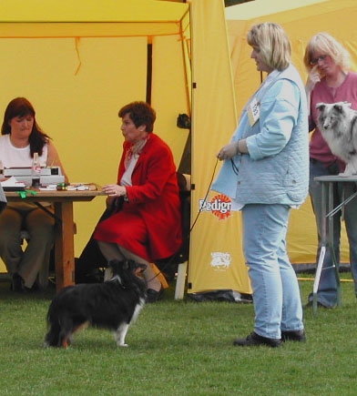 "Soccer" ist ein Sohn von der blonden "Shellove Honey Bee" und damit ein Enkelsohn von "Ch. Grandgables A Showy Fellow". Hier noch ein paar Fotos von den Ausstellungen bei denen er von seiner Züchterin, Annette Schulz-Geertz, "Molehillsdevils" Shelties vorgeführt wurde.