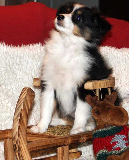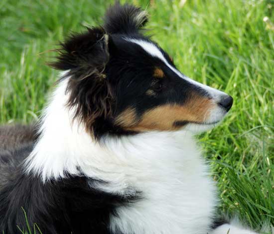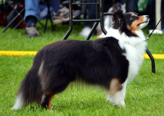 Als wir ihren Vater, "Howard" (= Int. Ch., Dt. Ch., Slow. Ch., Lux.Ch., Nl Ch. Dawnville Gotta Be Kidding ), kennen lernten begeisterte er uns vom ersten Augenblick an und schon sehr früh stand für uns fest, dass der erste Partner für unsere "Zoji" eben "Howard" werden sollte. Er ist für uns ein absoluter Traumsheltie vom Aussehen und vom Charakter her. Wir durften dabei sein als er auf der Crufts das Rüden CC-Res. gewann und wir haben es wirklich genossen ihn dort auf dem "heiligen" grünen Teppich zu sehen.