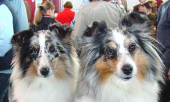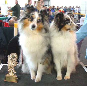 Obwohl uns gesagt wurde, dass auf belgischen CACIB Ausstellungen zumeist auch die belgischen Rassen in der FCI Gruppe I das Rennen machen und ein kleiner Sheltie normalerweise kaum eine Chance hat, versuchten wir erneut unser Glück. "Therese" war wohl von "ihrem Tag" absolut überzeugt und wurde belohnt mit dem 3. Platz in der FCI-Gruppe I (Foto rechts) Wir sind unglaublich stolz auf unsere kleine blaue Maus und werden diesen Tag wohl so schnell nicht vergessen. Mutter und Tochter: sozusagen ein unschlagbares Team. Wie schön, dass Claudia uns begleitete, denn wenn schon nicht Nette mit ihrer Kamera mit von der Partie ist, dann Claudia . . . Danke Claudia, dass Du diese Momente für uns mit Deiner Kamera festgehalten hast. |