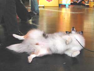 Nach einem wirklich wunderschönen Tag auf der Sheltie-Spezialausstellungen zusammen mit lieben Freunden machten wir uns dann zusammen mit Claudia und "Emmely" (Emmely von den Hasewiesen) dem Collie-Sheltie auf nach Belgien zur dort am nächsten Tag statt findenden CACIB-Schau in Mechelen. Auch "Farouche" war zusammen mit Marcella wieder aus Holland angereist. Zuerst wurden die Collies gerichtet und "Emmely" überraschte uns mit dem Erreichen eines hervorragenden "Vorzüglich 3. Platz" und das unter dem englischen Richter Terry Thorn, der auch die Shelties richtete. An dieser Stelle gratulieren wir Claudia und "Emmely" von ganzem Herzen zu diesem schönen Ergebnis. Etwas später - um ehrlich zu sein ganz zum Schluss - kamen dann auch endlich unsere Shelties an die Reihe und damit der große Tag und Auftritt unserer kleinen blauen Sheltie-Maus: "Therese" zweite von links inmitten der bis dato sechs besten der Gruppe I