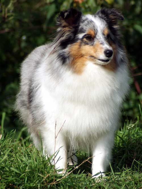 Wir sind froh das uns das Schicksal diese wunderbare kleine Sheltiedame geschenkt hat. Als das letzte Kind unserer "Therese" überhaupt nimmt sie sowieso eine Sonderstellung bei uns ein. Sie ist eine wirklich fröhliche, aufgeschlossene und temperamentvolle Hündin, die alle Menschen liebt und bei der wir uns manchmal wünschen würden, das sie ihre geringe Größe in Betracht ziehen würde wenn sie ihren kleinen "Dickkopf" auch gegen wesentlich größere Hunde durchzusetzen versucht. Aber genau wie wir sind diese größeren Hunde so erstaunt über die Dreistigkeit und das große Selbstbewusstsein unserer kleinen "Zoji" das sie zurückweichen und sie anstandslos respektieren . . . :-) Man muss sie einfach erlebt haben, sie ist einfach ein süßer kleiner blauer Engel . . . (. . . und als echter Teufel wie sollte es anders sein, mit einem kleinen "b" davor . . . ) der genau weiß wie niedlich und hübsch er ist !