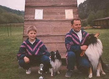 Leider setzte "Bunny" seiner Laufbahn bei der Ausbildung und im Ausstellungsring selbst ein Ende, als er sich im Januar 1993 mit unserem Collie-Rüden um eine läufige Hündin stritt und hierbei leider ohne dass wir rechtzeitig eingreifen konnten, den Kürzeren zog. Dies kostete ihm u.a. nach daraufhin notwendig gewordenen vier schweren Operationen sein rechtes Hüftgelenk.