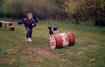 Die ganze Sache begann damit, dass wir meinten, nach ca. 5 Jahren Pause (wegen Hausbaus) wieder einmal auf den Hundeübungsplatz zu fahren um mit unseren Hunden etwas "Sinnvolles" zu tun. Da mein Mann mit der einzigen (altersmäßig) geeigneten Collie-Hündin arbeitete, entschied ich mich - damals notgedrungen - unseren kleinen schwarz-weißen Sheltie-Rüden zu nehmen. Das war Ende August 1987.