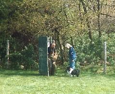 Nun war ich aber aufgrund dieser Fragen und der Art des Richters völlig mit den Nerven fertig und tat etwas, war mir schon seit über 1 1/2 Jahren nicht mehr passiert ist, ich holte Bunny am Winkel von der vermeintlich verkehrten Spur zurück und setzte ihn neu an. Aber Bunny war wie immer richtig gewesen!! Dieser Fehler kostete uns natürlich eine Menge - nämlich 7 - Punkte und war für meine angeschlagenen Nerven nicht gerade förderlich. Trotz allem schafften wir diese Sparte dann noch mit 85 Punkten. Gut tat mir dann das aufmunternde Zureden meiner Sportskameraden.