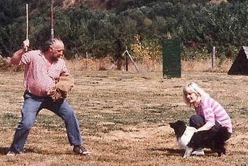 Ein Sheltie ist aber, wie man sich unschwer vorstellen kann, bei den Übungen nicht mit einem Schäferhund o.ä. zu vergleichen und man muß ganz anders und vorsichtiger als Helfer tätig sein. Außerdem muß der Helfer in der Lage sein ein Vertrauensverhältnis aufzubauen. Für einen Sheltie äußerst wichtig, da er ja bei den Übungen lange Zeiten mit dem Helfer alleine ist und keinerlei Unterstützung von seinem Hundeführer erhalten kann. Dies schafft natürlich auch nur ein Helfer, der sich auf jeden neuen Hund und dessen ganz eigenen Wesenszüge, gleich welcher Rasse dieser ist, einstellen kann. Sogenannte "Prügelknaben" sind hier absolut fehl am Platz.