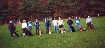 "Bunny" inmitten seiner "Trainingspartner"; das Foto entstand nach erfolgreich bestandener BH-Prüfung.