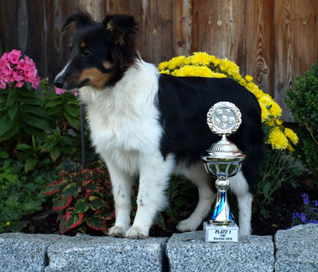 Tochter:"Favour's" Dt. Jugendchampion CfBrH & VDH "Ozelot vom Stormarner Land" geb. 02.02.2011, gen. "Lotti" V: Dt. Ch. VDH & CfBrH, Poln. Ch. Warlock's Favour vom Ohmtalteufel M: Kiri blue vom Stormarner Land Züchter und Besitzer: Erika Heintz, Hamfelde, Shelties "vom Stormarner Land" Foto: A. Geertz, 2012 Wir sagen von Herzen DANKE für dieses hübsche Foto von der so erfolgreichen blauen "Pfeiffer"-Tochter, denn "Lotti" holte sich ihre beiden Jugendchampiontitel mit nur 4 Ausstellungen insgesamt ! Wir sind stolz, das unser "Favour" eine so hübsche und erfolgreiche Tochter hat und drücken ganz fest die Daumen für weitere Erfolge im Ausstellungsring ! |