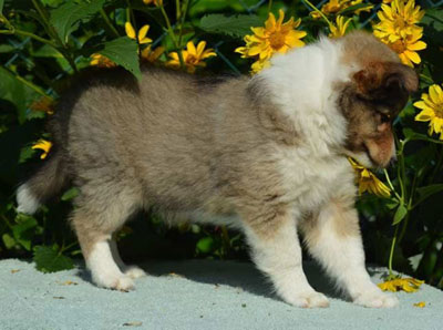 Favour's" dreizehnter Wurf geb. am 02.05.2014 war mit "Little Marilu I. Lady of Lasvegas" Bes.: Silke Dirkes, Shelties Shelties "von der Sheltiebande" und zwar 1 blue merle Hündin, 3 tricolour Hündinnen |