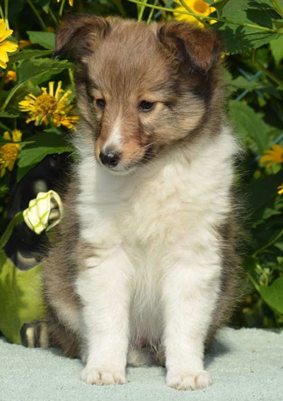 "Favour's" erster Wurf, geb. am 13.04.2010 war mit "Shellove Honeybee" Bes. Annette Schulz-Geertz, "Molehillsdevils" Shelties, und zwar 2 zobel-weiße Rüden und 2 zobel-weiße Hündinnen |