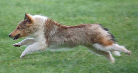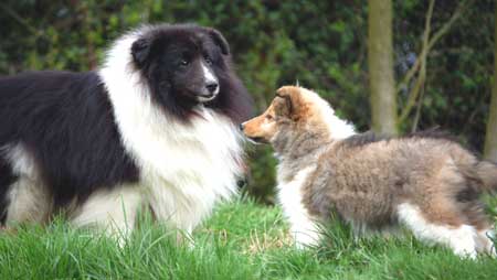 Er war sofort in unserem Rudel zu Hause und zeigt den großen Collies was ein handfester Sheltie ist.