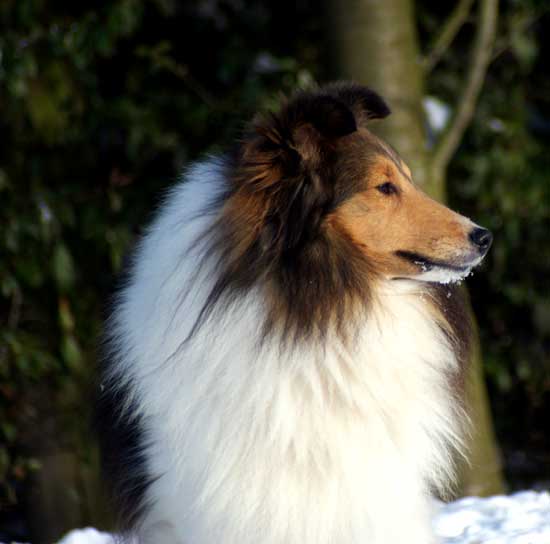 Seine bisherigen Reisen zu Ausstellungen in Holland und Dänemark meisterte er absolut souverän wie seine Eltern. Er lässt sich so leicht nicht "die Butter vom Brot nehmen" hier bei uns im Rudel und weiß sich durchzusetzen auch gegenüber den Collies.