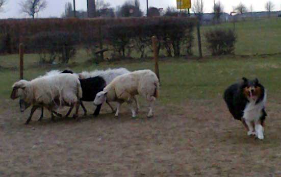 auf dem Foto sieht man "Sam" beim Hütetraining |