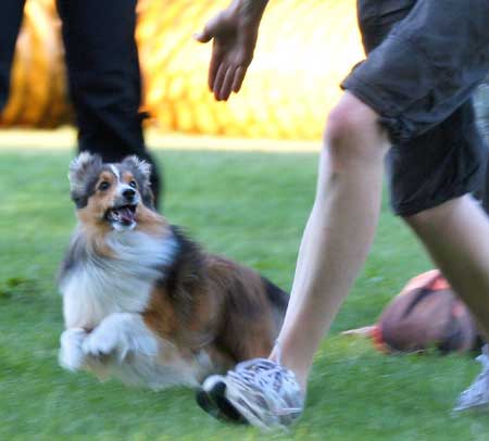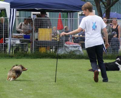 Am 10.07.2005 bestand der kleine Sheltiemann im Alter von 16 Monaten die Begleithundeprüfung beim Pinscher und Schnauzerclub in Siegen als TAGESBESTER ! ! Damit war der Weg frei für seine Karriere im Agility und die konnte beim besten Willen nicht traumhafter beginnen. Er zeigte dass er der Sohn seiner Eltern ist und errang folgende Erfolge: Am 18.09.2005 DVG MV Oestrich A1 Lauf 1. Platz V0 unter Richterin K. Brox Am 25.09.2005 Hundefreunde Menden A1 Lauf 1. Platz V0 / Jumping1: 1. Platz V0 unter Richter Hans Günther Hertrich Am 01.10.2005 HSV Hostedde Grevel A1 Lauf: 1. Platz V0 unter Richter Peter Vox Am 02.10.2005 HSV Hostedde Grevel Jumping2: 1. Platz V0 unter Richter Peter Vox und an diesem Tag gewann er außerdem den Pokal für den 5. schnellsten Hund (4,5 m/sec.) des Tages unter allen Klassen und Hunden (eingeschlossen auch die Border Collies !) Sein letztes Turnier für dieses Jahr bestreitet er im Oktober und ist nach nur vier Turnieren und im Alter von gerade mal 20 Monaten bereits berechtigt in der A2 zu starten.
