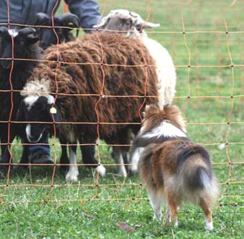 Uns erreichten heute die ersten Fotos von unserem "Jon-Paul" = "All in One vom Ohmtalteufel" der seit kurzem jede Woche am Hütetraining bei den "Grenzlandschafen" teil nimmt - und das mit großem Erfolg und absolutem Hüteinstinkt. |