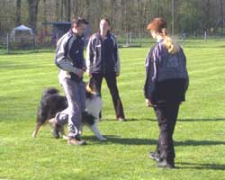 "Quentin" bestand am 02. November 2002 zusammen mit seiner "Kommilitonin", Sandra Rech, die Ausdauer-Prüfung, am 10. November 2002 die BH-Prüfung und am 12.10.2003 die VPG1 - Prüfung !!! Wir gratulieren Sandra ganz herzlich zu diesem Erfolg. |