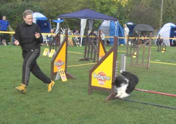 der heutige Tag (15.08.2009) hat meine Erwartungen noch weit übertroffen. Heut und morgen findet bei uns in Korneuburg die Hallentrophy statt, bei der am Sa ein A-Prüfungslauf im Freien und je ein A-Open und ein Jumping Open in der Halle statt findet. Das selbe am So plus Finale. Den Prüfungslauf konnte Sam haushoch für sich entscheiden und gewann diesen mit 1 Fehler und einer Zeit von 35,58 sec also mit 7 Sekunden Vorsprung zum Zweitplatzierten. Die Open Läufe waren technisch sehr anspruchsvoll und alle Hunde einer Grösse wurden in einer Wurscht gewertet. Bei 47 Hunden recht schwierig. Dazu kam, um am Sonntag im Finale laufen zu dürfen, muss man sich bei einem der 2 Open Läufe vom Samstag oder der 2 Open Läufe vom Sonntag qualifizieren.