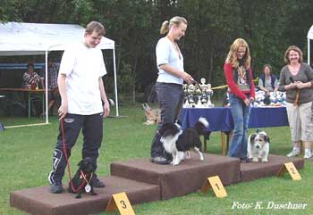 "Kaethy" bestand am 14. Oktober 2007 zusammen mit Monika Rau im zarten Alter von gerade mal 17 Monaten die BH-Prüfung mit 57 Punkten (von 60 möglichen) und belegte damit von 18 Startern den 2. Platz !! Wir sind unglaublich stolz dass unser kleines Teufelchen zusammen mit ihrer zweibeinigen Freundin eine solche Leistung vollbracht hat. Man darf gespannt sein, was die beiden in der Zukunft noch zu leisten imstande sein werden, denn wie wir Monika und auch unsere kleine "Kaethy" kennen war dies nur der Anfang . . . :-)) Näheres zu "Kaethy" und ihrem sportlichen Werdegang lesen sie bei den Collies & Shelties "The Pride of Rough's" |